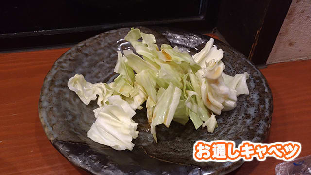 こちらのお店の付き出しキャベツは、タレがかかっております。