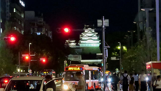 姫路城の夜のライトアップです。