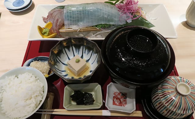 注文はもちろん、「活きいか御膳」(税抜2800円)←イカが大きいと100gあたり1500円増額となります。