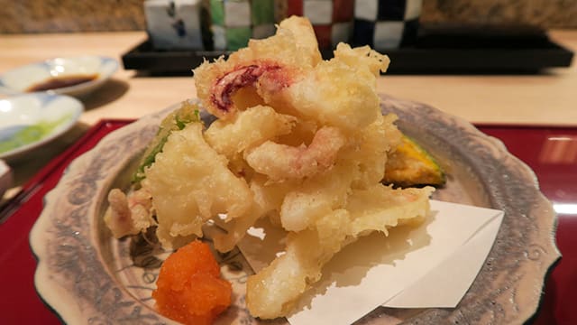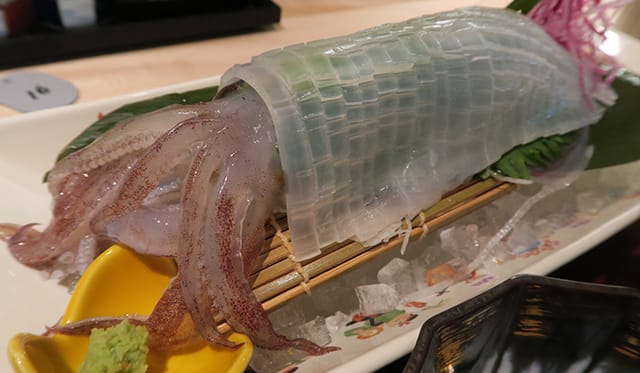 イカの胴体部分以外(ゲソやヒレ等)は、「天ぷら」「焼き」「刺身」から選択して楽しめます。
