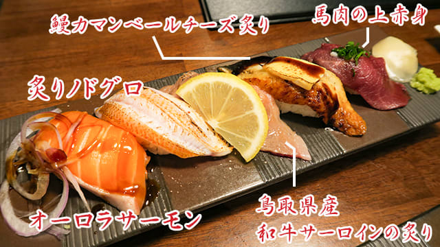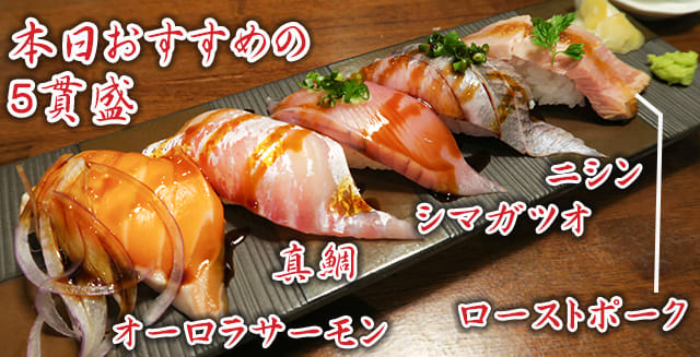 「1人1皿限定! 絶品、本日の最高の5貫盛り」